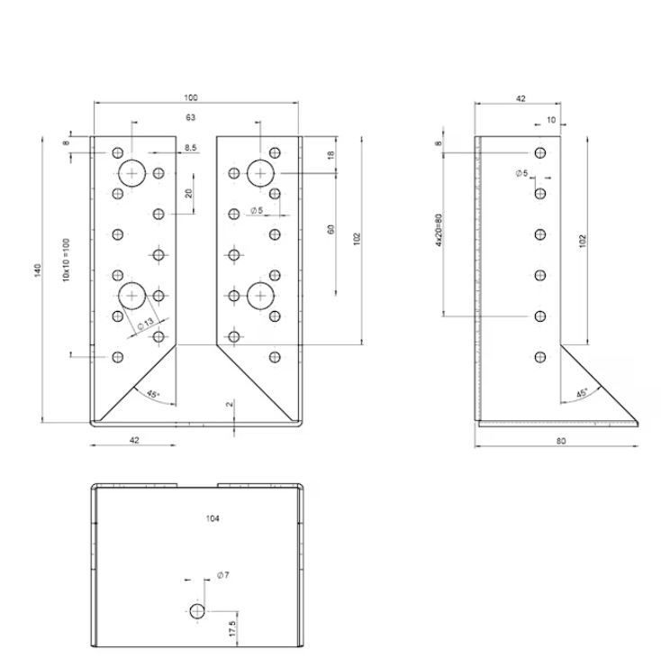 Balkenschuh einteilig, nach innen abgewinkelt BALKENSHH-(IN-ABGEWI)-100X140X2,0