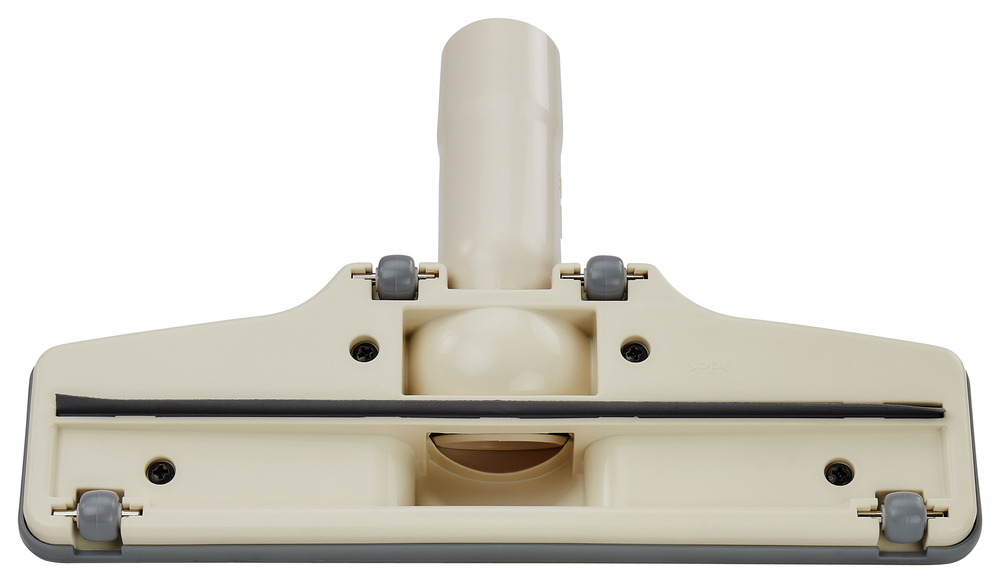 Bodendüse in der Farbe Beige für harte Böden. Durch vier Laufrädchen fährt die Düse leicht über die zu reinigende Fläche. Die Bodendüse ist zudem mit einem von rechts nach links durchgehenden Stoßschutz versehen. Die Unterseite verfügt über eine Gummilippe welche die Verunreinigungen zum Saugloch führen.