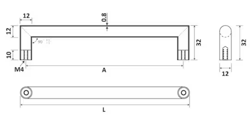 Design-Möbelgriff Bügelform MG-A 13GRF-(BUEGEL QG)-A2-128MM