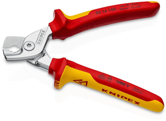 Kabelschere L.160mm Kopf verchr.VDE Mehrkomp.-Hüllen Form 1 KNIPEX