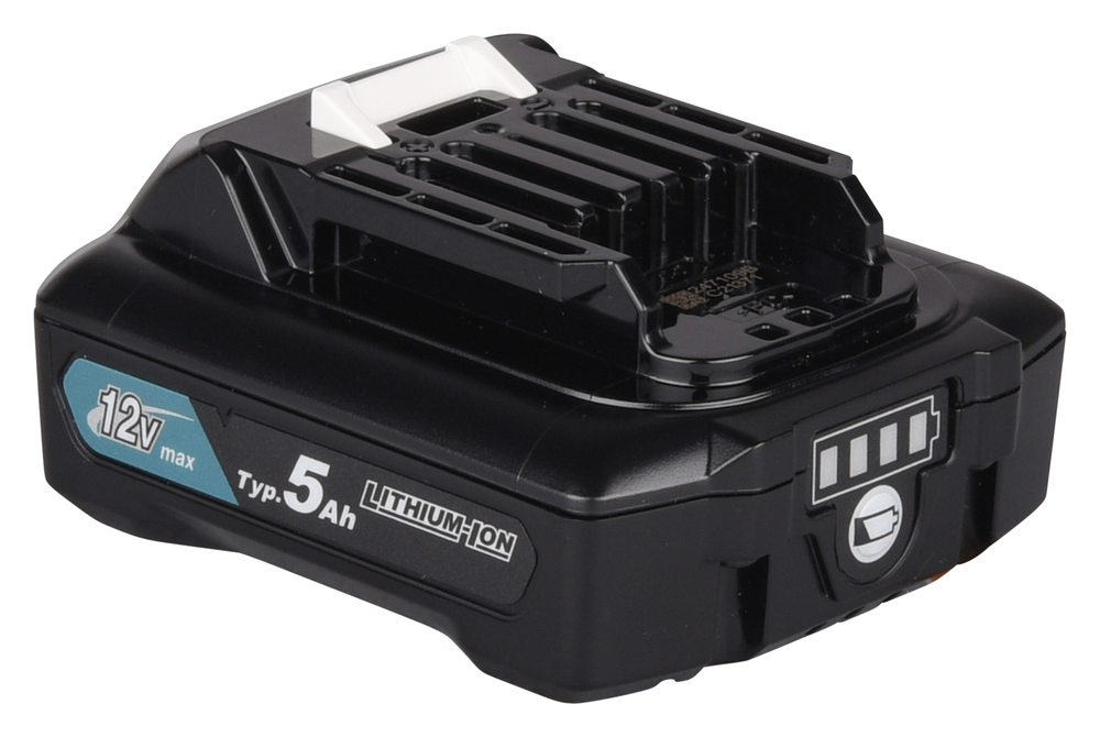 Mit den neuen 21700 Akku-Zellen ist BL1050B leichter und kompakter (durch einreihig verbaute Zellen), aber auch leistungsstärker als vorherige 12V max. Akkus. Im Vergleich zu BL1041B hat der BL1050B Akku 22,5% mehr Kapazität und ist 16% leichter. Die Kapazität des Akkus wird über 4 grüne LEDs angezeigt. Ladezeit: 75 Minuten mit Schnellladegerät.