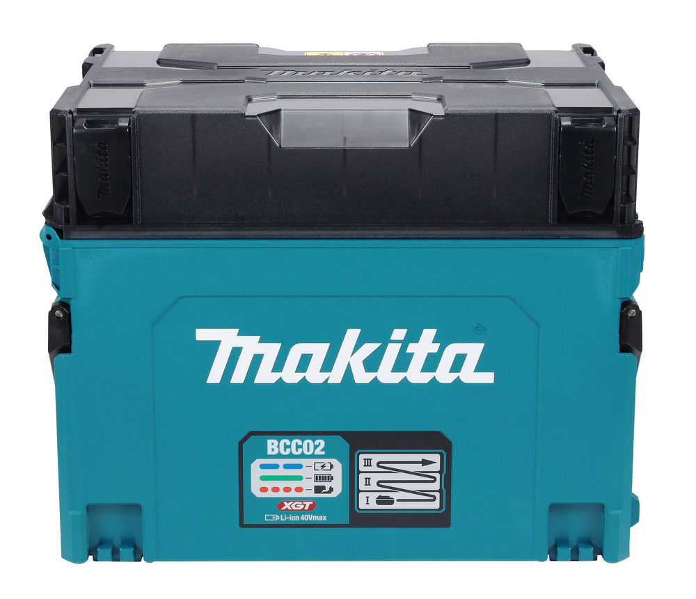 BCC02 ist ein Akku-Ladekoffer der mit dem MAKPAC-System kompatibel ist zum Laden von max. 12 XGT-Akkus von 2,0 bis 4,0 Ah. Dieses Ladegerät ist ideal für Arbeiten auf Baustellen oder bei Arbeiten, die mehrere Akkus erfordern. Das kofferähnliche Gehäuse funktioniert als Ladegerät und wird mit einem Adapter an eine Steckdose angeschlossen.