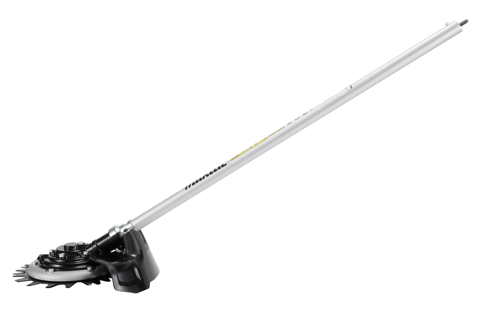 Der Scherenaufsatz EM407MP ist mit allen Makita Akku- und Benzin-Multifunktionsantrieben kompatibel und verfügt über zwei gegenläufig rotierende Messer. Nach dem Scherenprinzip wird das Gras geschnitten. Die niedrige Rotationsgeschwindigkeit mindert das umherfliegen des geschnittenen Guts oder von kleinen Steinen. Der Schnittkreis beträgt 230 mm.