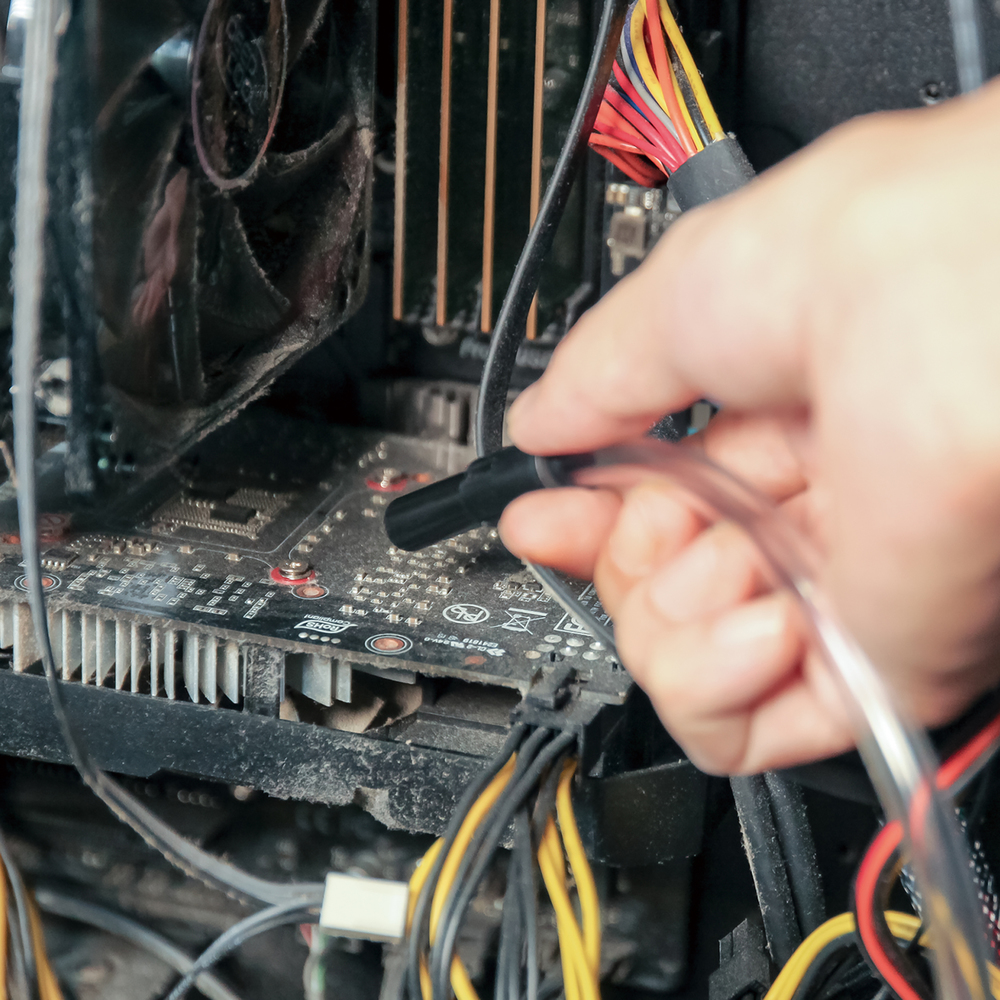 Die Langdüse mit einer Länge von ca. 800 mm eignet sich zum Ausblasen von schwer zugänglichen Stellen wie Serverschränke, Computer usw.