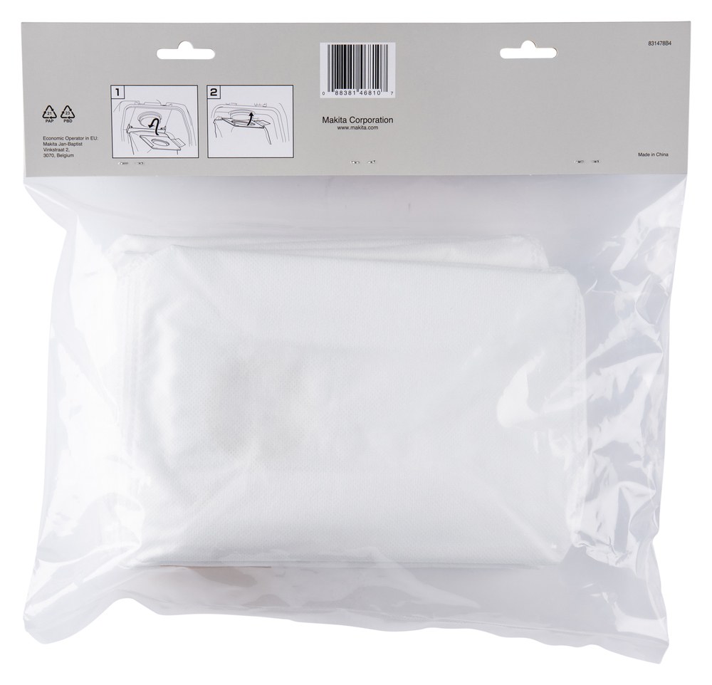 Der Filtersack aus Vlies ist geeignet für die Akku-Rucksackstaubsauger VC008G, VC009G, DVC261 und DVC265. Die Säcke haben ein maximales Füllvolumen von 2 Litern und eignen sich für Baustoffe wie z.B. Holz und quarzhaltigen Materialien wie Stein und Beton.