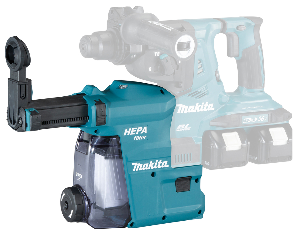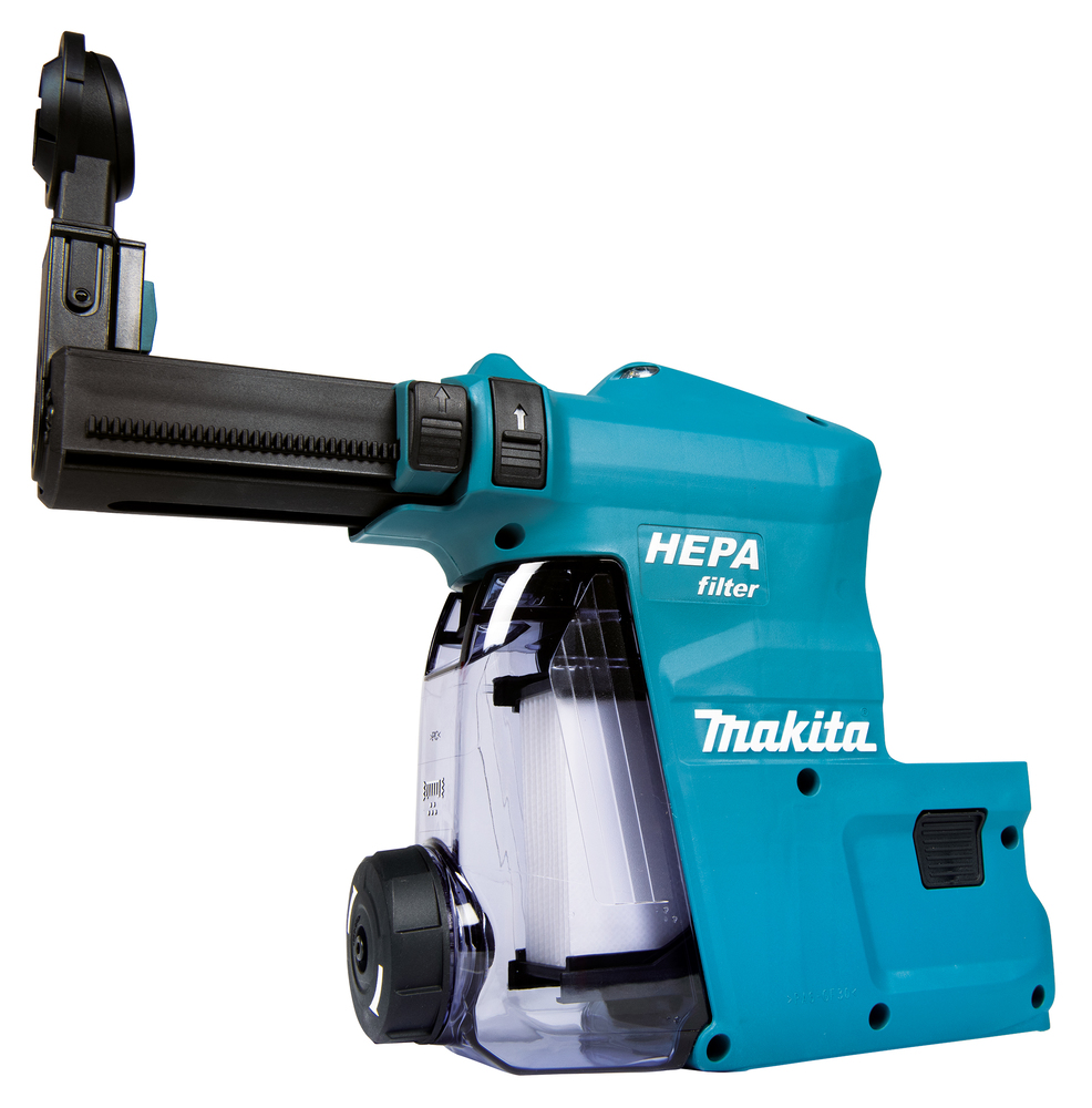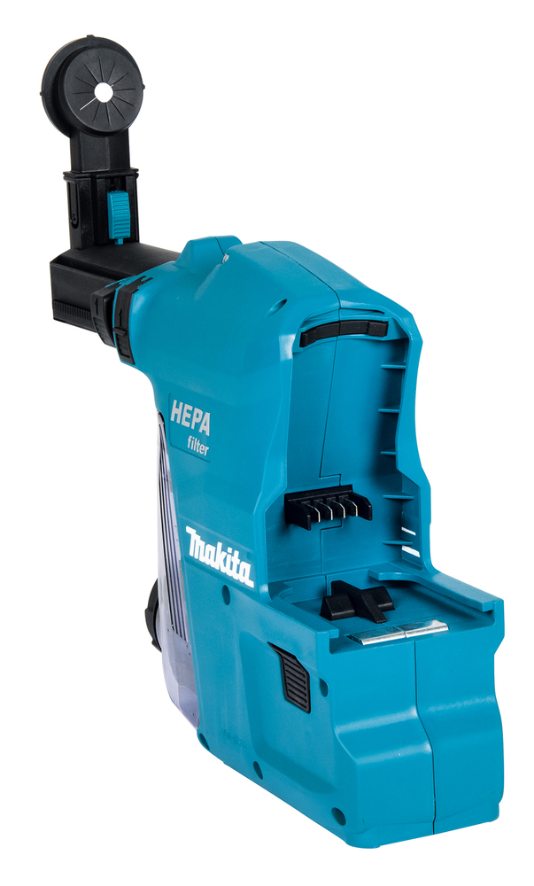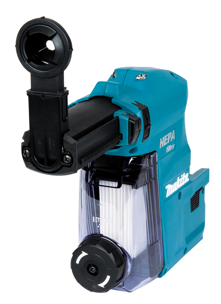 Filterreinigungsmechanismus: Bei nachlassender Saugkraft, kann durch die Nutzung der Reinigungsvorrichtung der Staub vom Filter entfernt werden, ohne das ein Abnehmen der Staubbox notwendig ist. Großer Staubbehälter für längere Betriebszeit zwischen den Reinigungsvorgängen. Transparente Staubbox zur schnellen Kontrolle des Füllstandes. Leicht abnehmbare Staubbox, für eine schnelle und einfache Staubentsorgung. Tiefenbegrenzer für genaue Tiefeneinstellung. Doppelverriegelung verhindert das unbeabsichtigte Entfernen vom Bohrhammer. Stromversorgung automatisch über den Bohrhammer. Hubhöhe der Absaugung max. 96 mmSaugleistung 350 l/min. Gewicht 1,5 kg