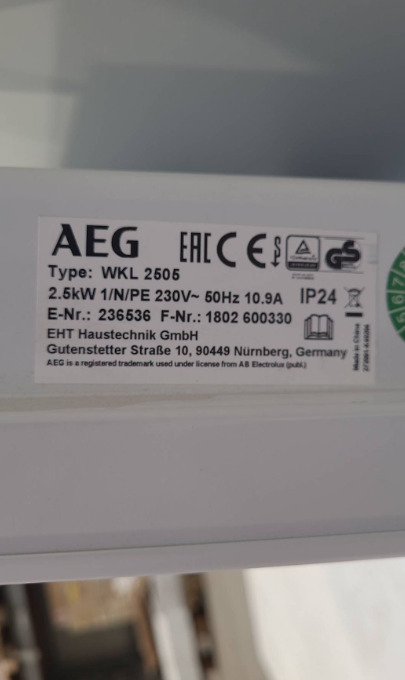 Produktinformationen "2,5 KW AEG E-Heizung WKL 2505 I TH1671"