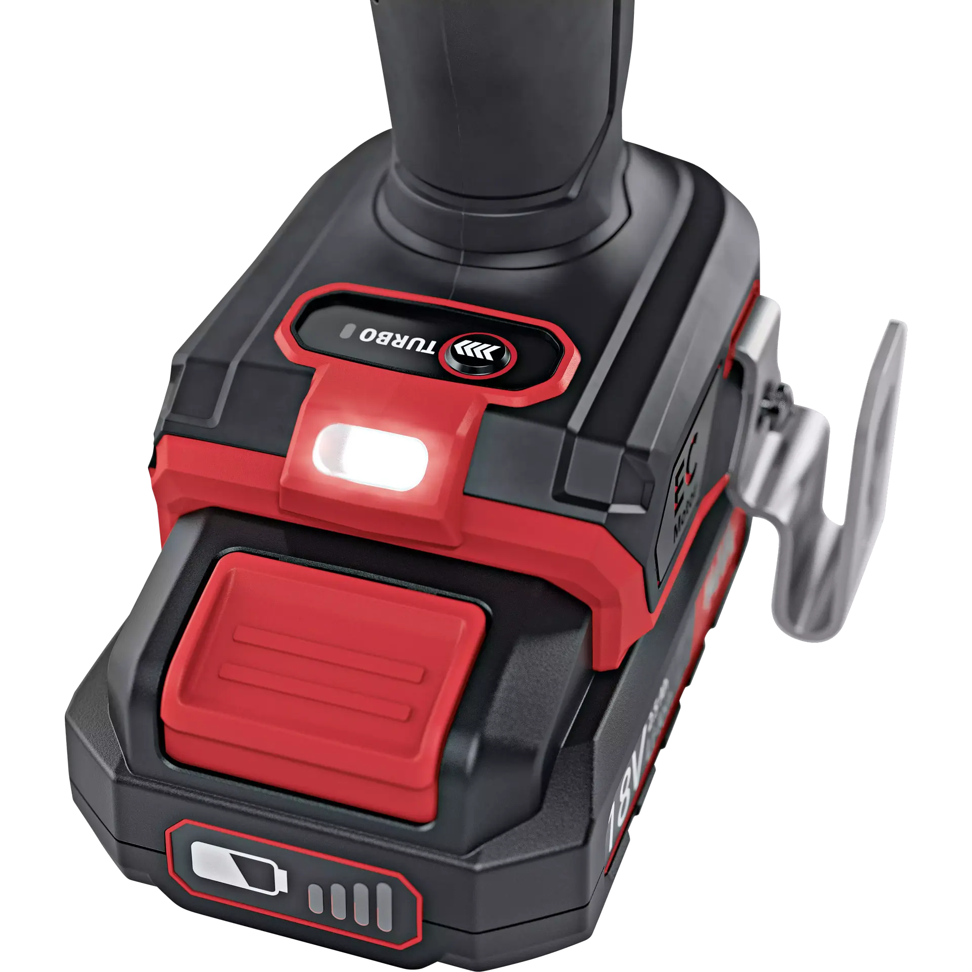 - Turbo-Modus für schnelles und kraftvolles Arbeiten. Durch Einschalten des Turbo wird eine bis zu 27% höhere Drehzahl erreicht