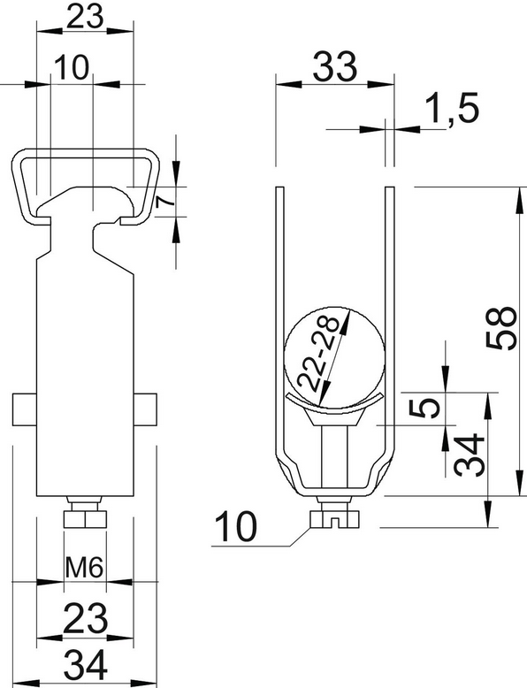 Bügelschelle, 1-fach Kunststoffdruckwanne, FT 22-28 mm I TH1617