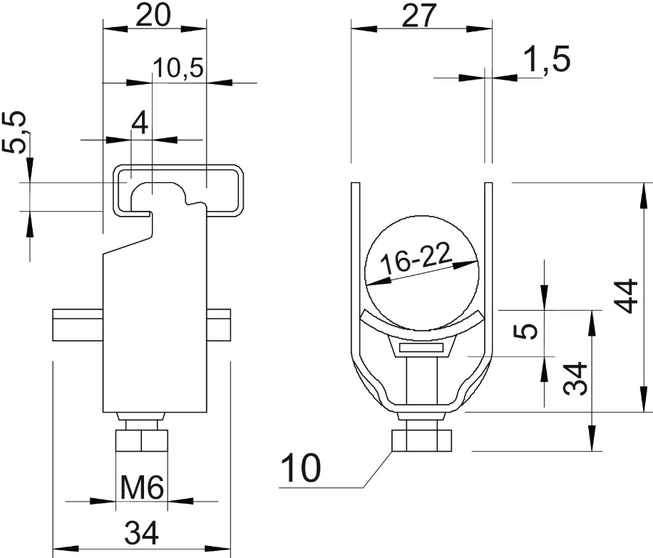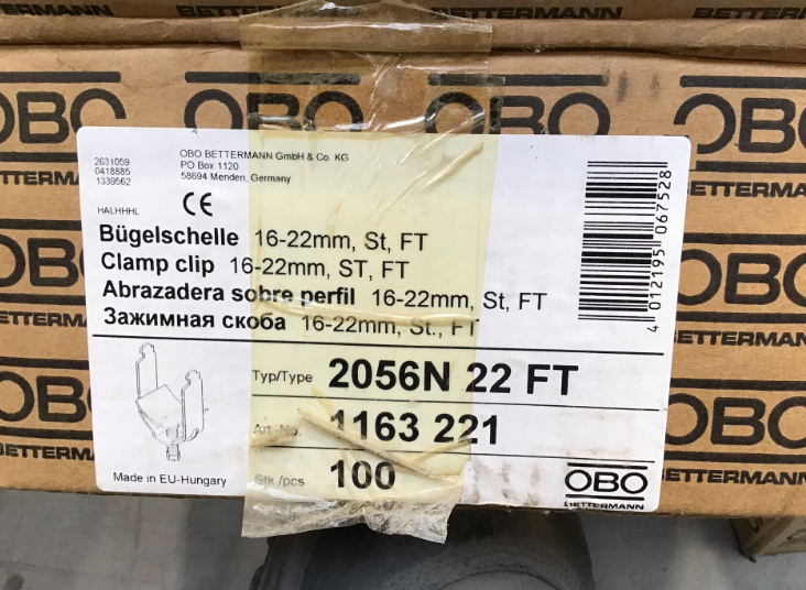 OBO Bettermann 2056N 22 FT Bügelschelle, 1-fach Kunststoffdruckwanne, FT I TH1620