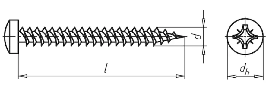 Stahl, blau verzinkt, Vollgewinde, Pan Head, Kreuzschlitz PZ