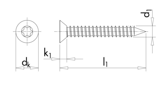 ISO 14586 Edelstahl A2 Senkkopf TX Form C