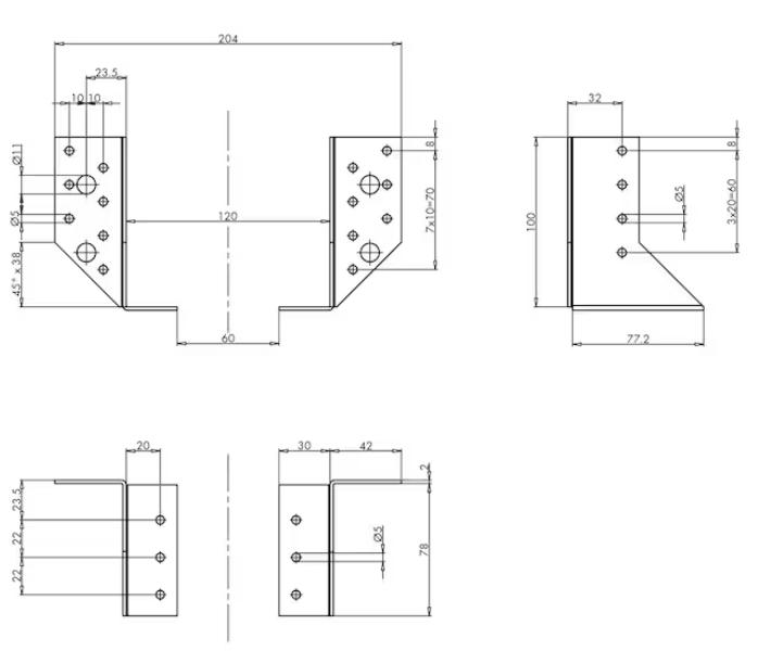 Datenblatt " 30x100 mm Balkenschuh 2,0 mm zweiteilig (ST)"