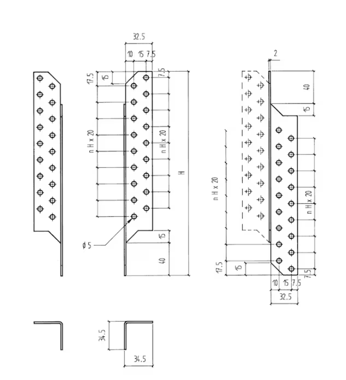 - Lochdurchmesser Nebenträger nJ / Hauptträger nH: 5 / 5 mm