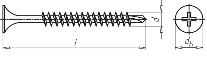 - Für die Verschraubung von Gipskartonplatten auf Metallprofilen von 0,75 – 2,25 mm Stärke