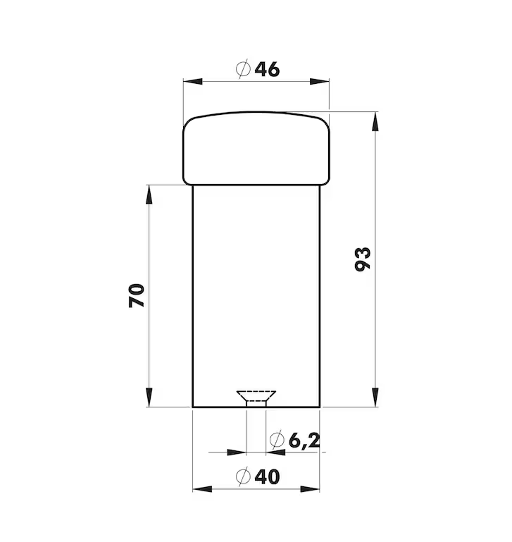 - Lieferumfang: 1x Türstopper inkl. Abdeckung, 1x Linsensenkkopfschraube 5,5 x 70 mm, 1x Nylon Dübel 8 mm