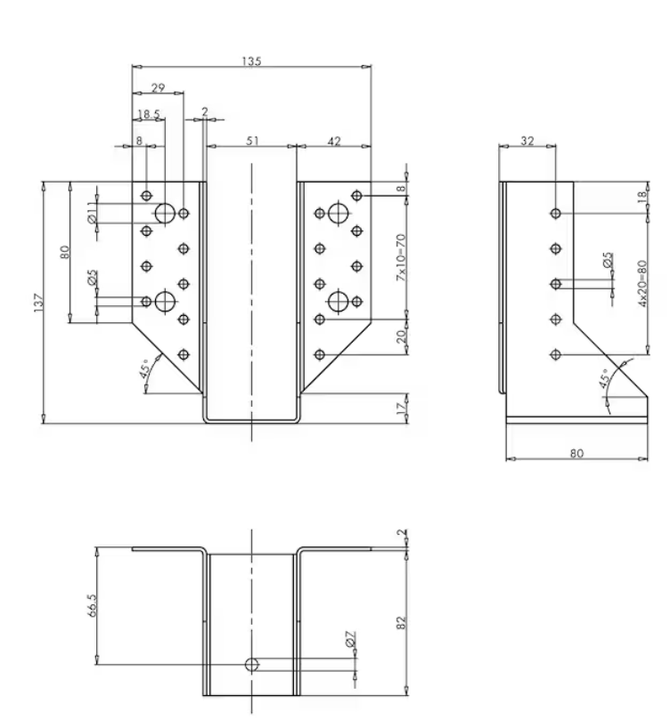 - Anzahl Löcher D 5 mm Nebenträger nJ + Hauptträger nH: 10 + 18 STK