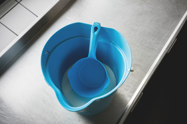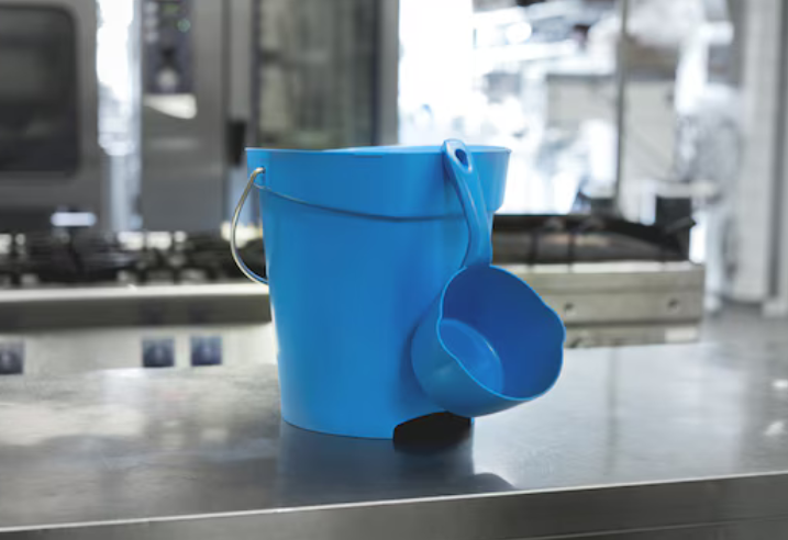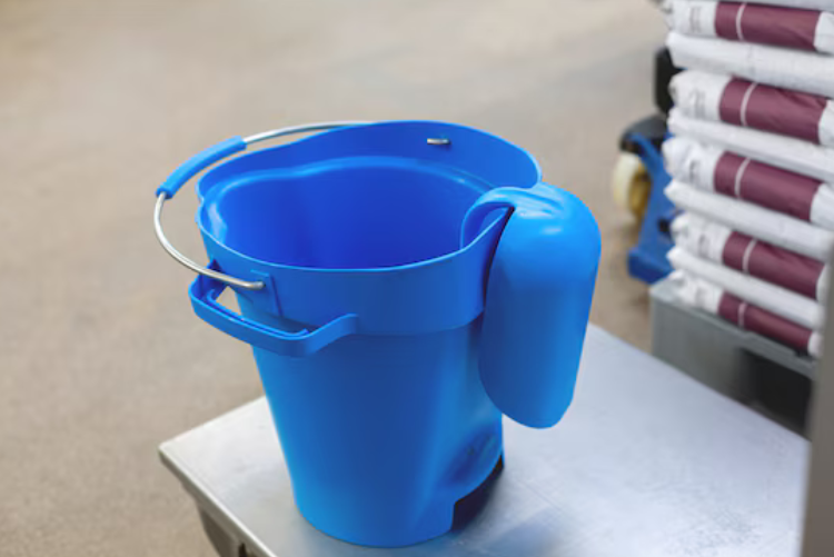 Gerade Rückseite zum seitlichen Tragen, ohne dass der Eimer ans Bein stößt oder etwas herausschwappt