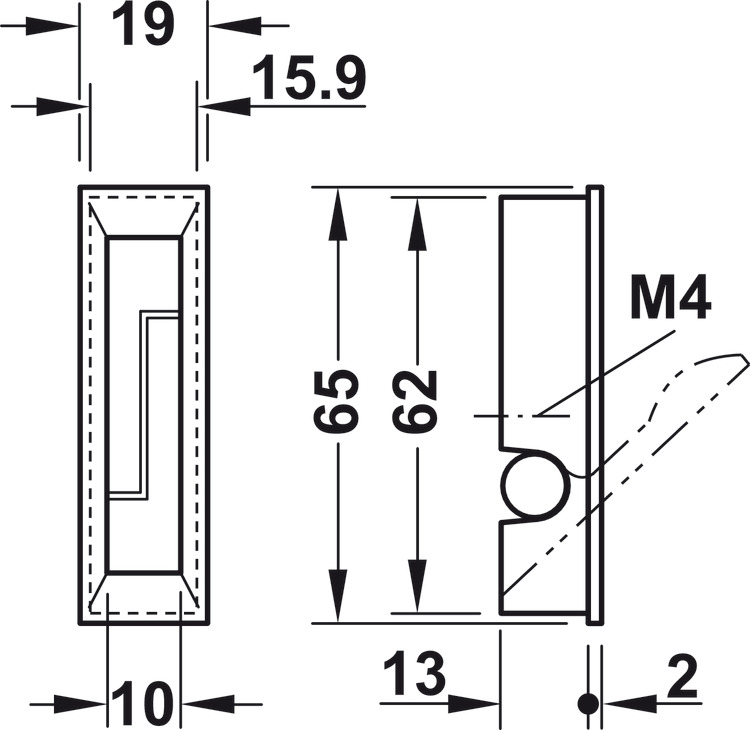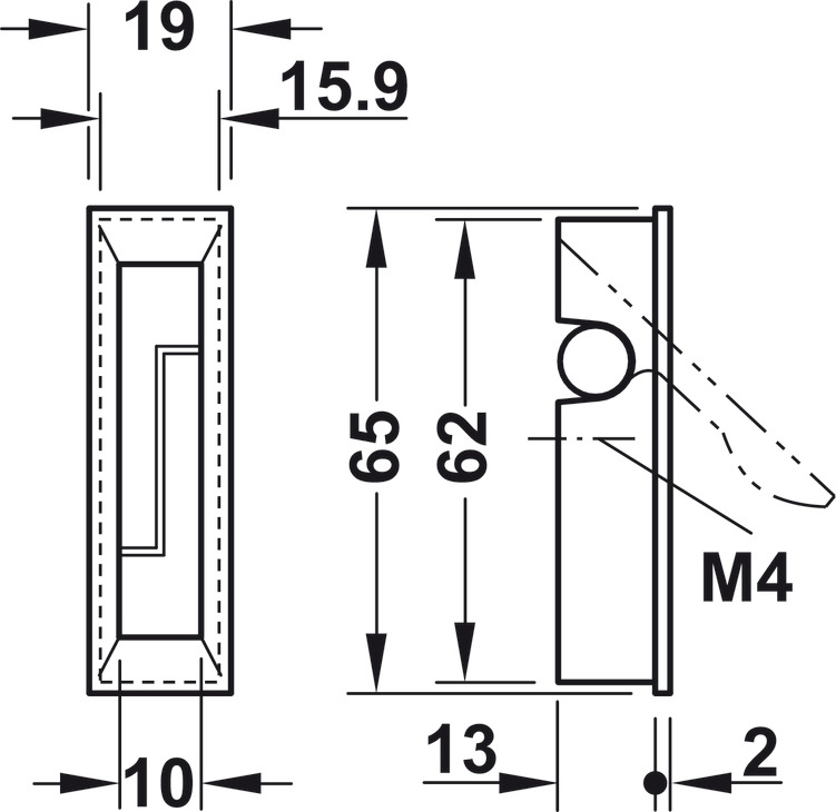 - Außenmaße: 65 x 19 mm