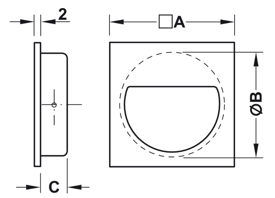 Produktinformationen "70 x 70 mm Muschelgriff Quadratisch | innen Halbkreis "