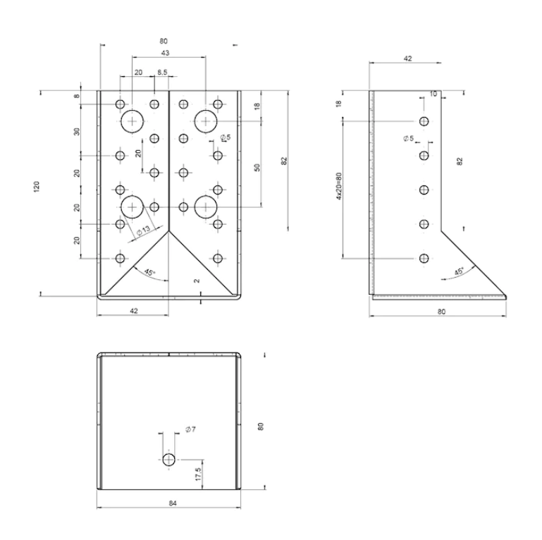 - Anzahl Löcher D 5 mm Nebenträger nJ + Hauptträger nH: 10 + 18 STK