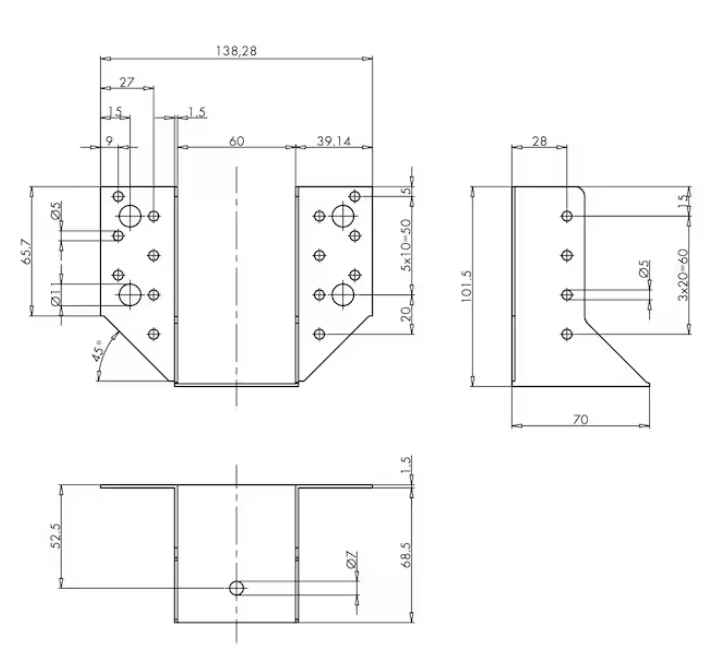 - Anzahl Löcher D 5 mm Nebenträger nJ + Hauptträger nH: 10 + 18 STK