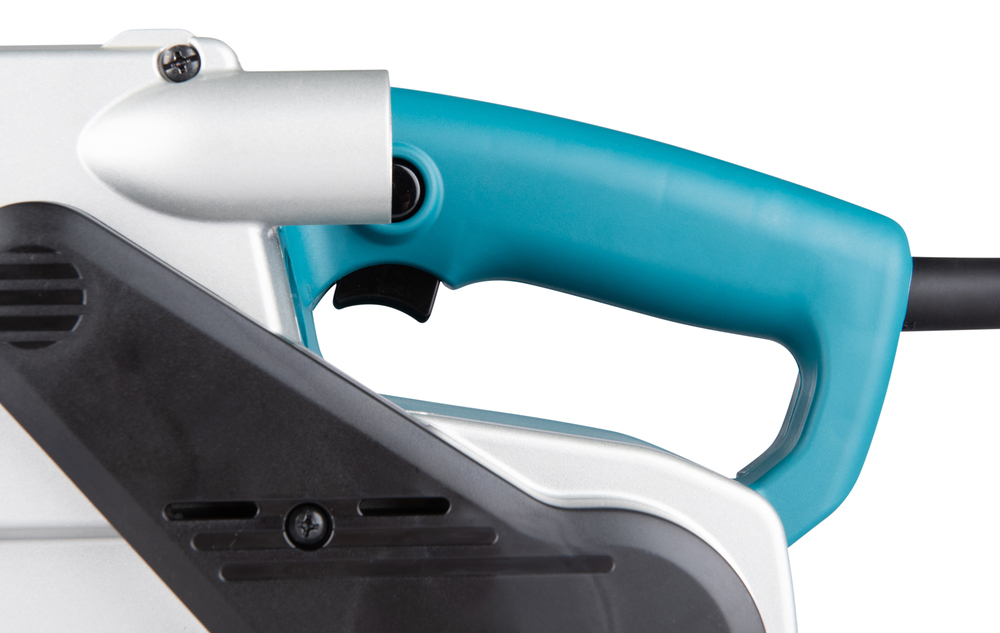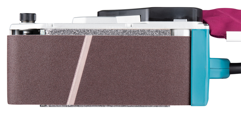 Ein starker Bandschleifer mit hoher Abtragleistung dank eines 1.010 W starkem Motor. Automatische Schleifbandzentrierung. Kompatibel mit einem 100 mm breiten Band, erreicht die Maschine eine einstellbare Bandgeschwindigkeit von 210 bis 440 m/min. Effiziente Staubabsaugung mittels Staubsack.
