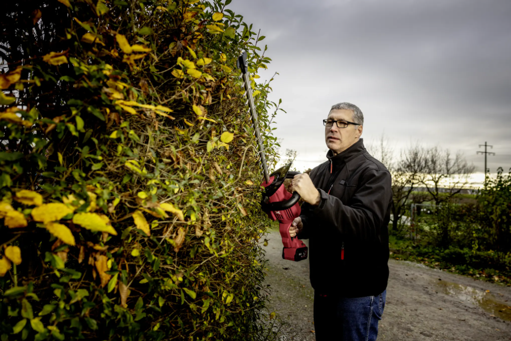 - Mit Sicherheitsdoppelschalter, verhindert unbeabsichtigtes Anlaufen der Heckenschere und zusätzlichem Handschutz.