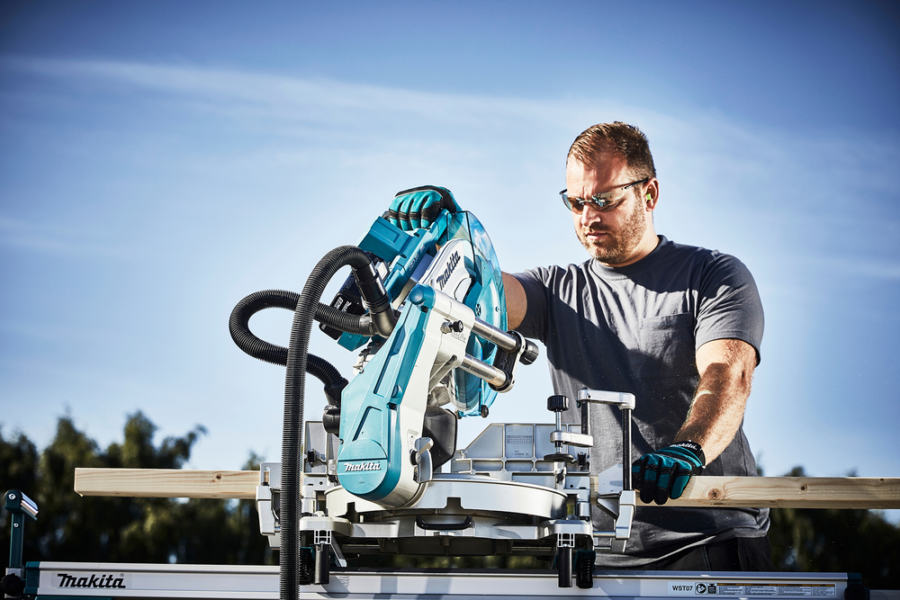 Leistungsfähige bürstenlose Akku-Kapp- und Gehrungssäge mit Auto-start Wireless System zur Staubabsaugung für anspruchsvolle Einsätze