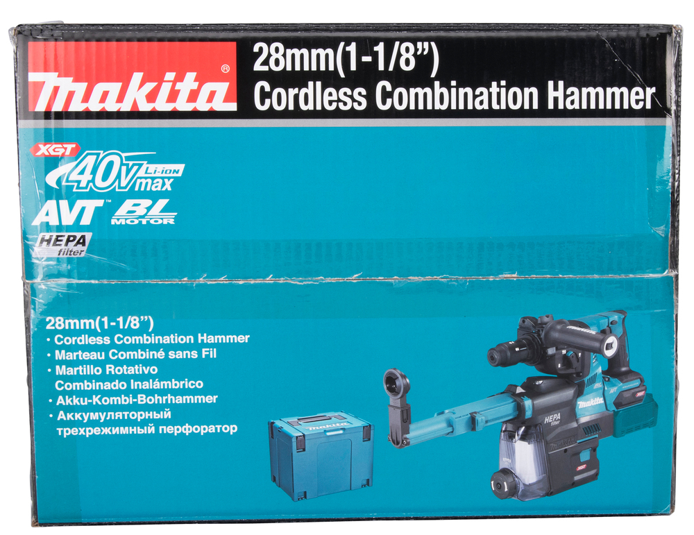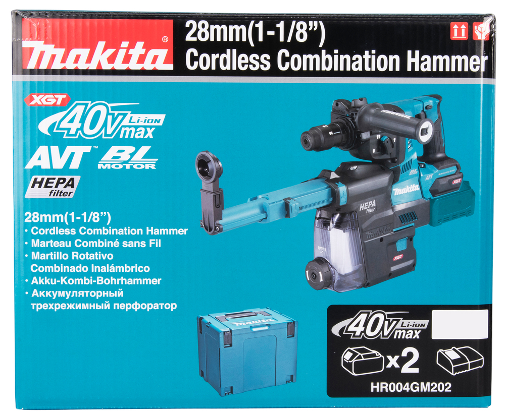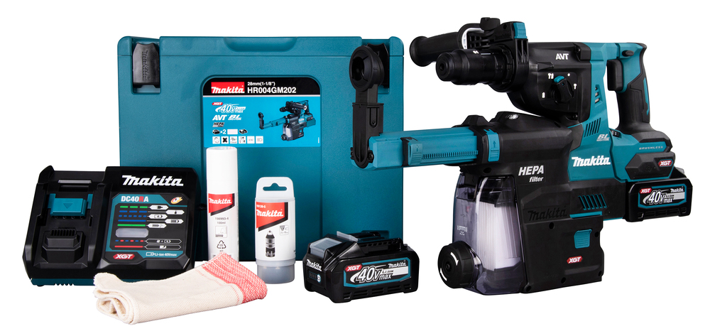 Die Lieferung erfolgt inklusive MAKPAC Größe 4, Schnellladegerät und zwei 40V max. Akkus mit je 4,0 Ah. Inklusive Schnellwechselfutter. Zusätzlich gehört die Staubabsaugung DX14 zum Lieferumfang.