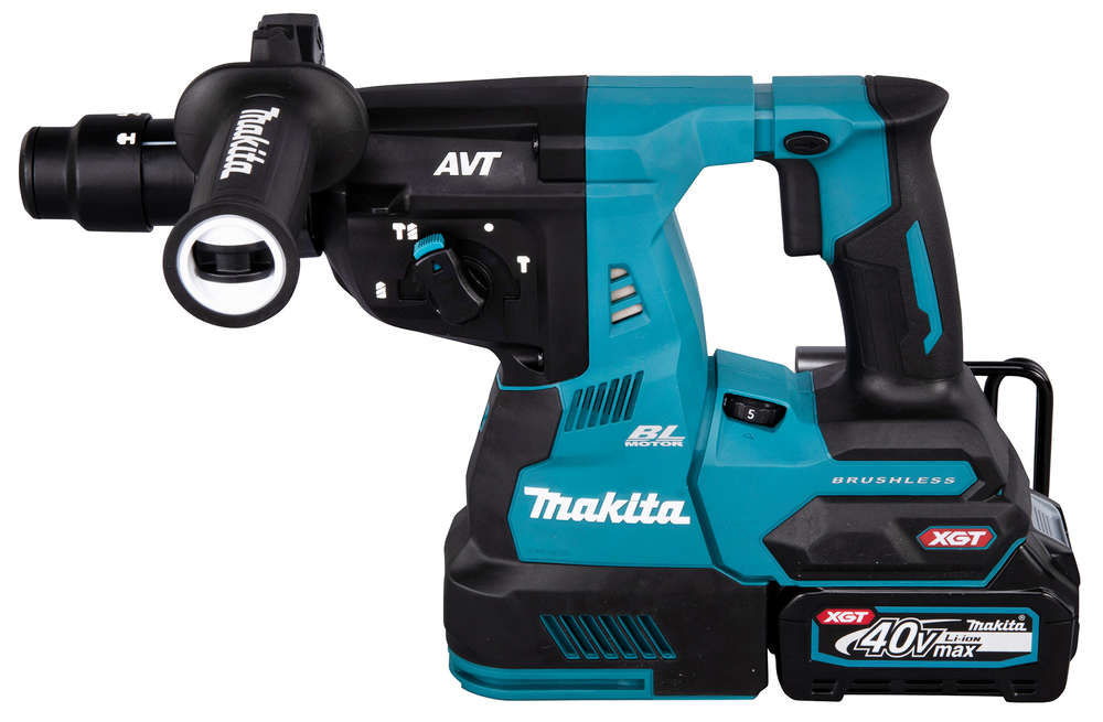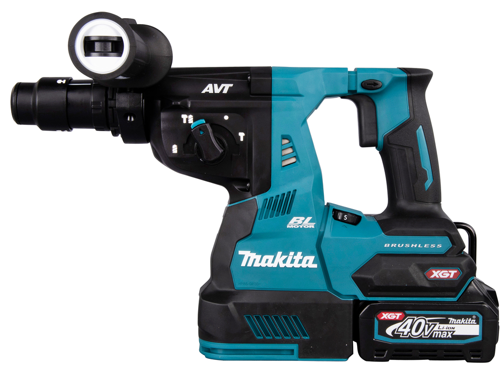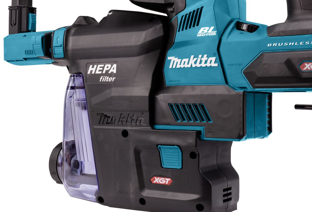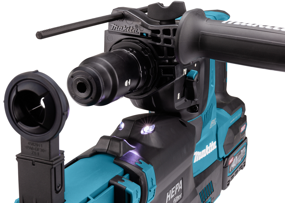 Leistungsstarker 40V max. Akku-Kombihammer mit SDS-PLUS-Werkzeugaufnahme. Für staubfreies Arbeiten wird die Staubabsaugung DX14 mitgeliefert. Die Maschine verfügt über einen Drehstopp, damit auch leichte Meißelarbeiten möglich sind. Mit AVT zur Reduzierung von Vibrationen. Inklusive Schnellwechselfutter und Staubabsaugung DX14.
