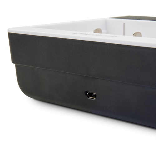 mit USB Eingang für 1-4 NiMH Akkus der Größen Micro AAA / Mignon AA / Baby C / Mono D sowie ein 9V E-Block · mikrocontrollergesteuerte Ladung mit Einzelschachtüberwachung · 3-farbige LED-Anzeige zum Ablesen des Zellen-Status · mit intelligenter "PERFECT 7" Ladetechnologie (Kapazitätsschnelltest, schonende Vorladung, Akku Analyse, Schnellladung, IQ-Abschaltung, Top-Off Ladung, Erhaltungsladung) · für den 9V E-Block gibt es zusätzlich die Funktionen des Kapazitätsschnelltests