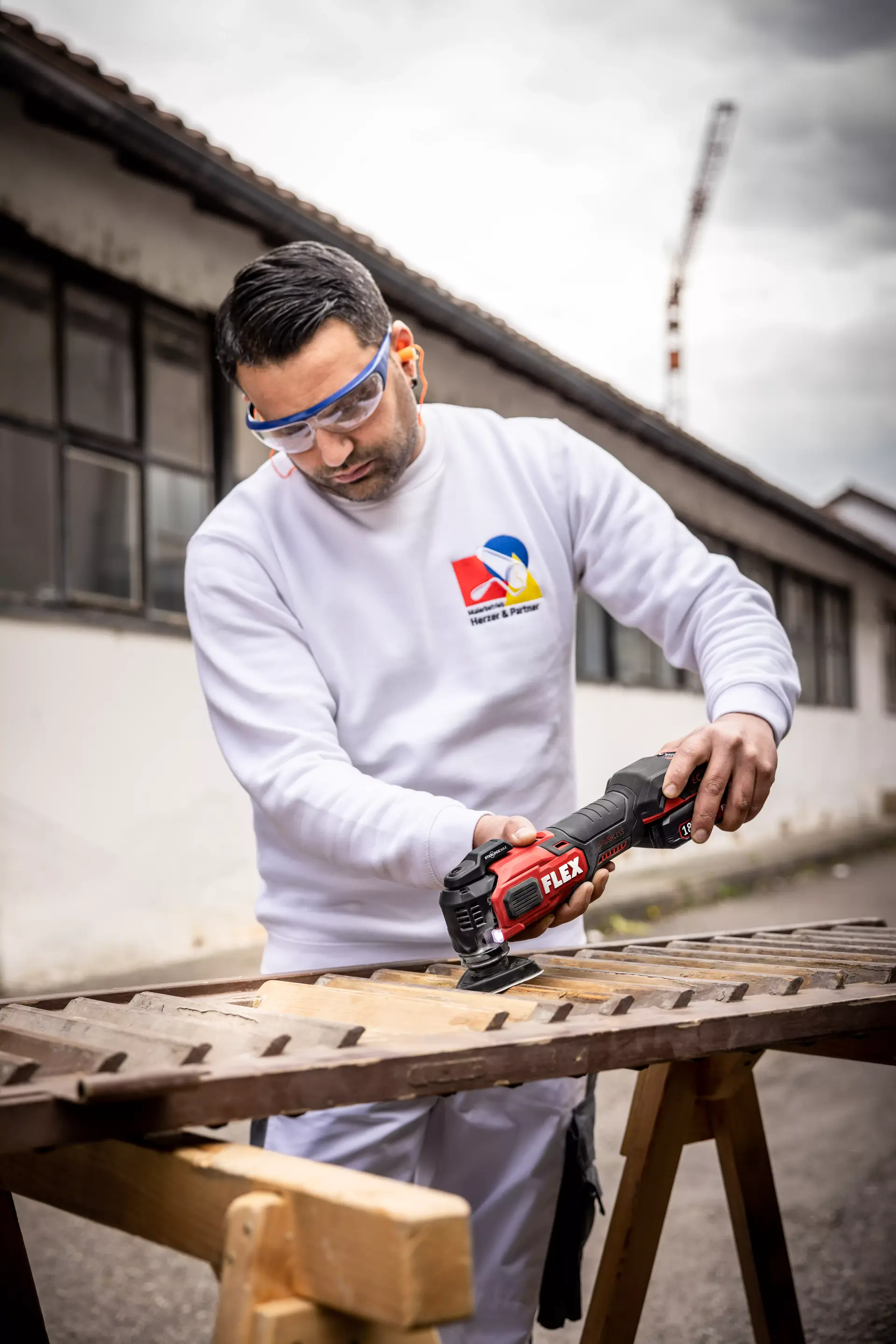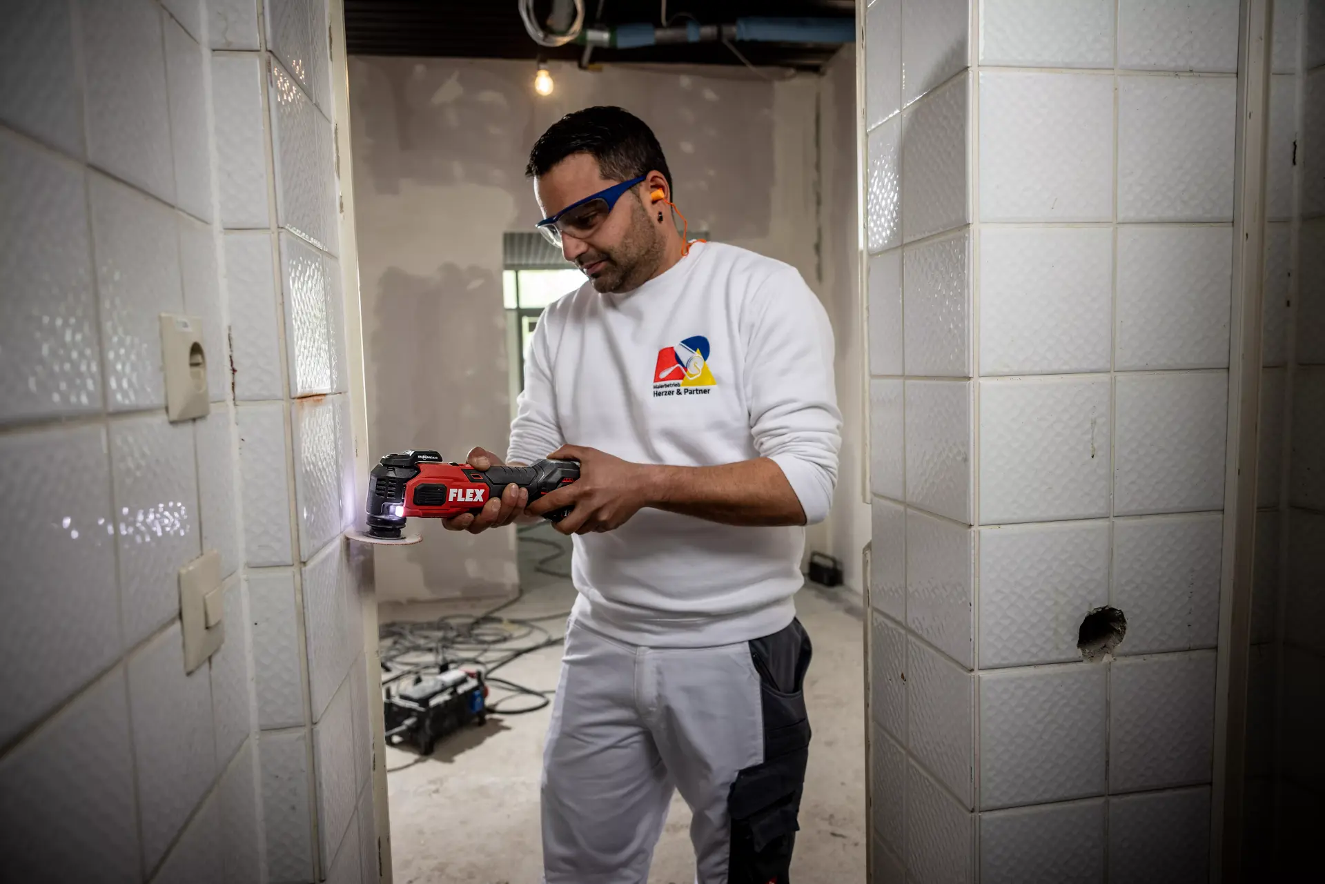 - das entfernen von Fliesenmörtel und Kleber, Abkratzen von Silikonfugen, Farbe und Teppichkleber, schleifen von Profilen und in Ecken
