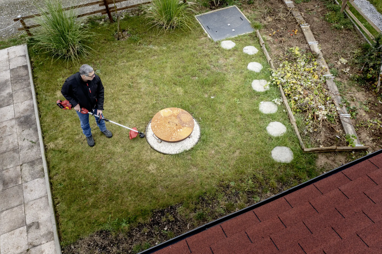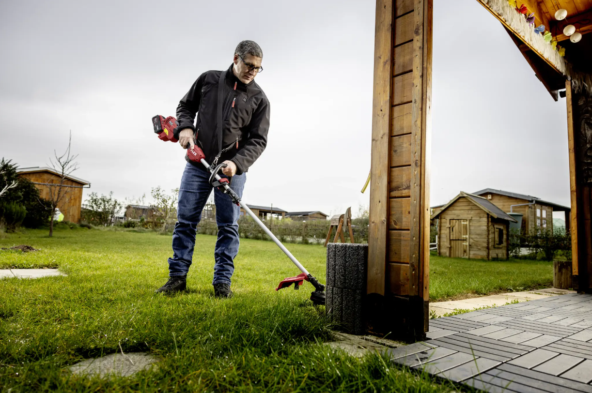 - Leistungsstarker Akku-Rasentrimmer mit hoher Schnittgeschwindigkeit in 2 Stufen zum Trimmen von Grünflächen, Entfernen von hohen Gräsern und leichtem Gestrüpp, Schnittbreite 30 cm.