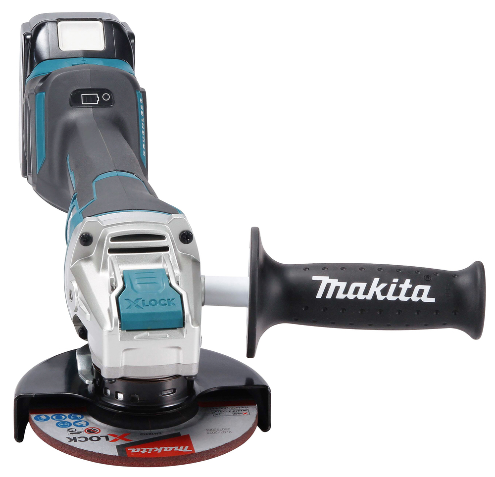 Sehr handlicher Akku-Winkelschleifer mit 18 V Antrieb und einem Scheibendurchmesser von max. 125 mm für anspruchsvolle, professionelle Anwendungen. Ausgestattet mit AFT, ADT und Motorbremse. Die Drehzahl ist elektronisch regelbar. Mit einem nicht auf Dauerbetrieb arretierbarem Paddelschalter. Mit X-LOCK für einfachen und schnellen Werkzeugwechsel. Mit Wiederanlaufschutz.
