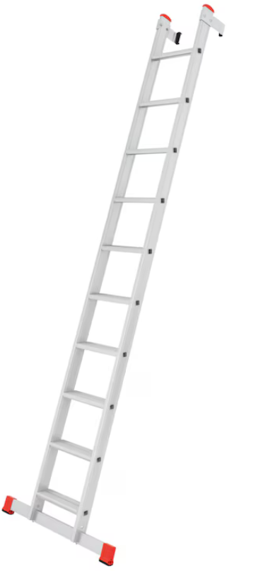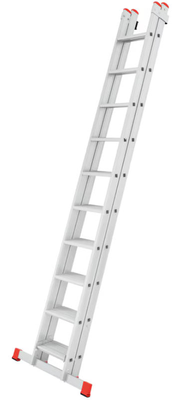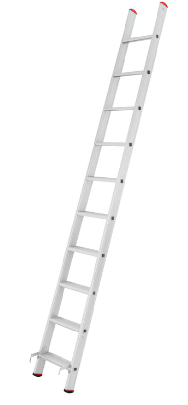 - Reduzierte Stolpergefahr beim Auf- und Abstieg da sich das Schiebeteil hinter der Unterleiter befindet und somit kein „Überhang“ entsteht