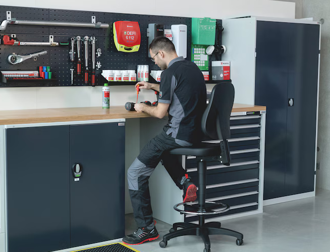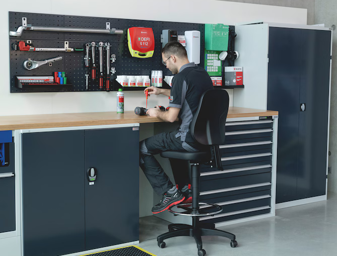 Ideal für hohe Arbeitsplätze in der Werkstatt und Produktion, an denen sichere Mobilität erforderlich ist.