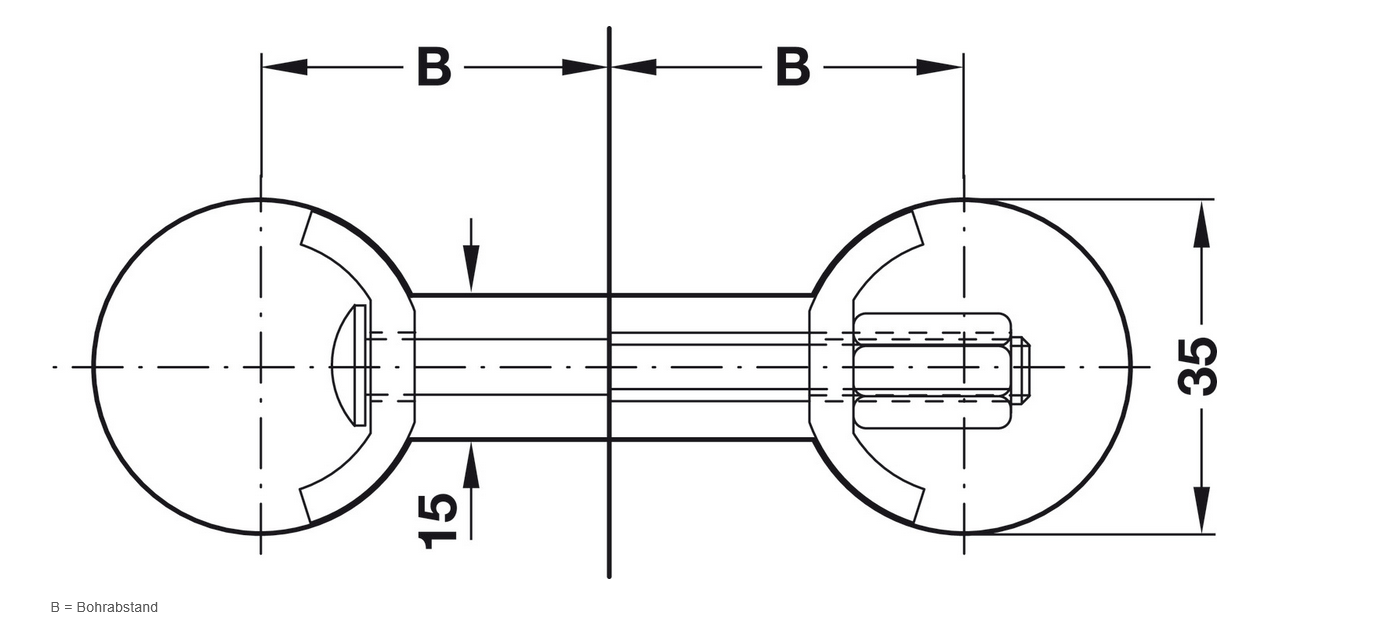 Bolzenlänge BL: 65 mm, Bohrabstand B: 32–41 mm
