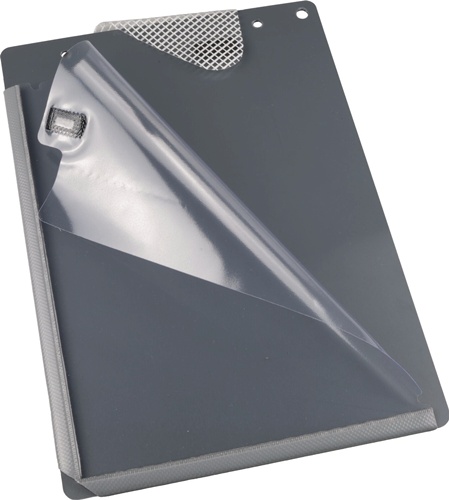 DIN A4 · extra stabile 2 mm PVC-Hartfolie · Schlüsselfach auf der Rückseite · ausgestattet mit einer Falzschweißnaht für zusätzlichen Reißschutz · geflochtene Schnur zum Aufhängen · VE = 10 Stück