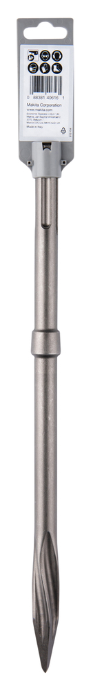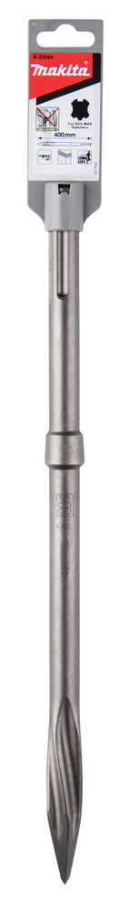 Selbstschärfender Spitzmeißel für SDS-MAX Hämmer mit einer Länge von 400 mm. Das innovative Design hält die Spitze länger scharf im Vergleich zu herkömmlichen Spitzmeißeln.