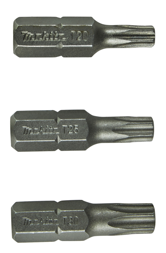 Drei passgenaue Bits T20, T25, T30 für allgemeine Verschraubungen im Handwerk