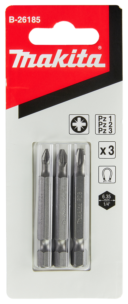 Drei passgenaue Bits PZ1, PZ2, PZ3 für allgemeine Verschraubungen im Handwerk