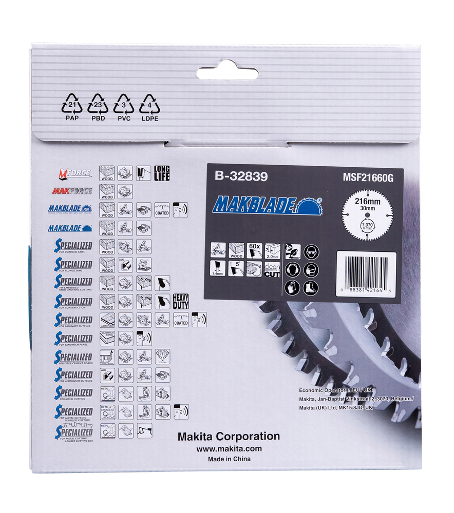 Produktinformationen "B-32839 MAKBLADE Sägeb. 216x30x60Z"
