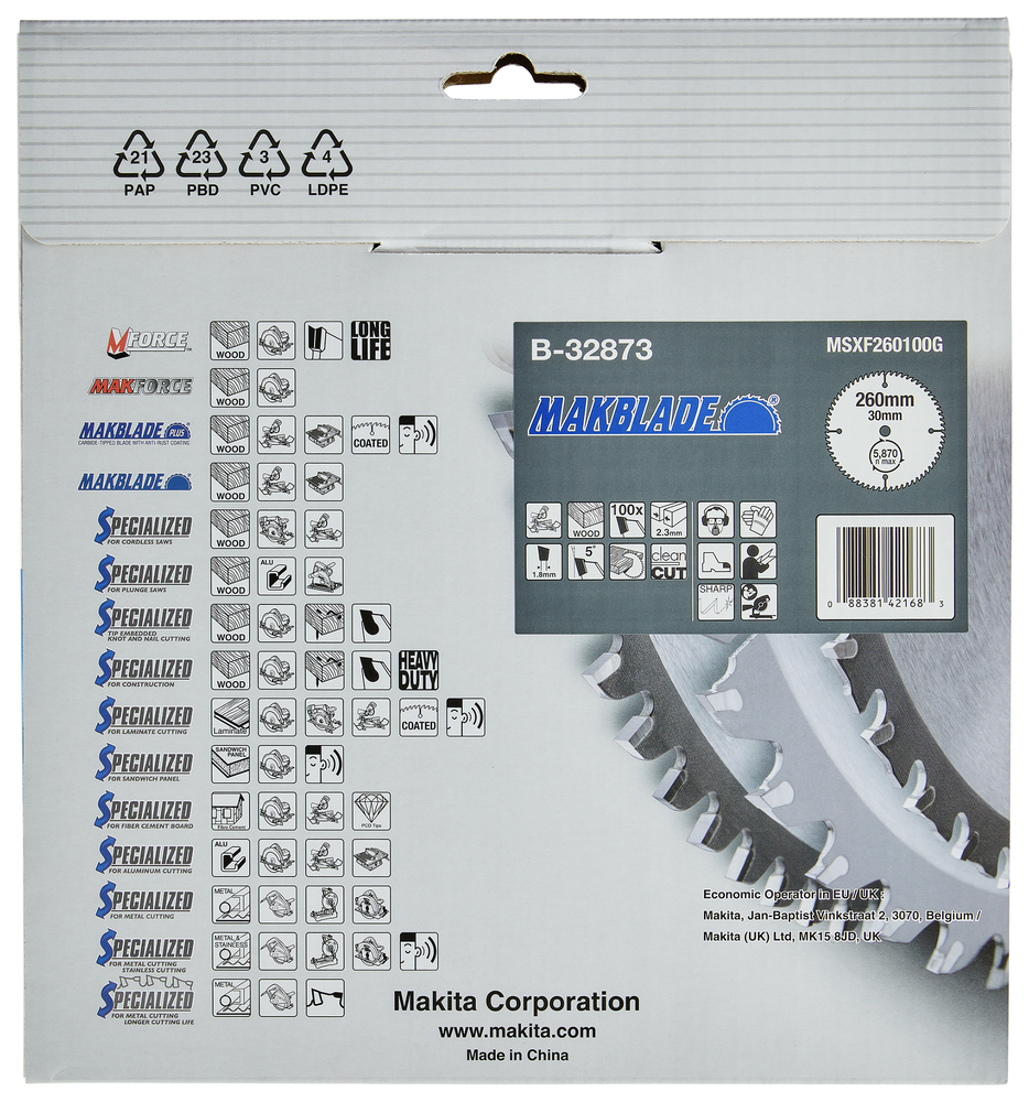 Produktinformationen "B-32873 MAKBLADE Sägeb. 260x30x100Z"