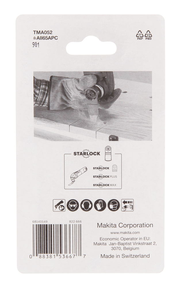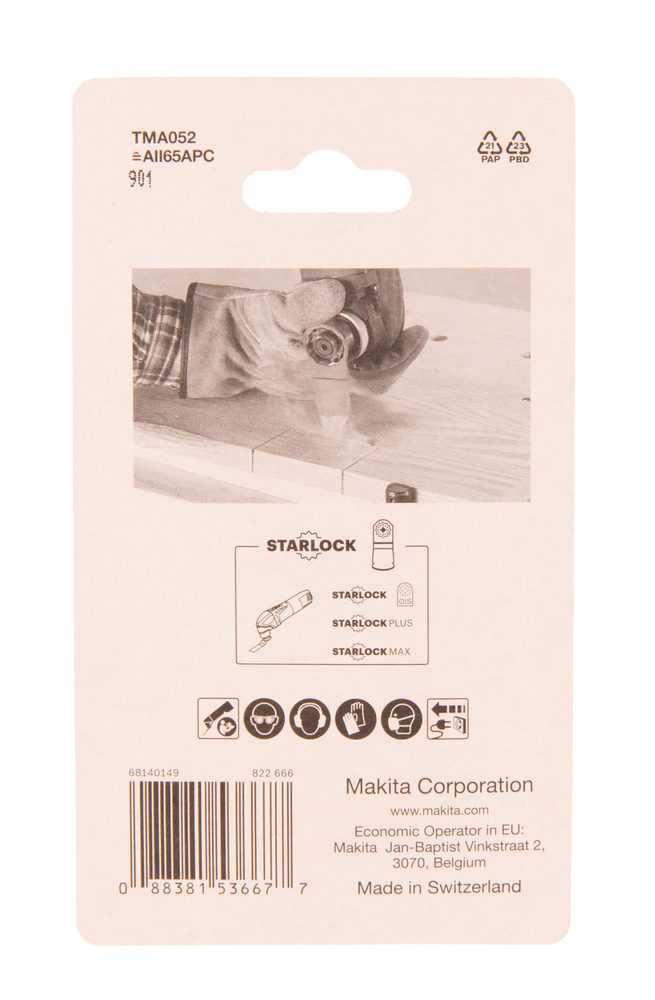 5x Tauchsägeblatt TMA052 mit einem 65 mm breiten und 40 mm tiefen Schneidblatt. Die Tauchsägeblätter sind für präzise Tauchschnitte in Holz und beschichtete Platten oder zum Türstock kürzen. Mit Starlock-Aufnahme für eine maximale Kraftübertragung und einen schnellen Blattwechsel.