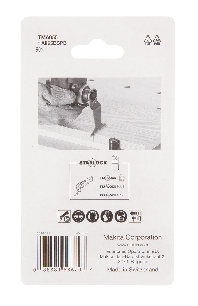 5x Tauchsägeblatt TMA055 mit einem 65 mm breiten und 40 mm tiefen Schneidblatt. Die Tauchsägeblätter haben eine besonders lange Lebensdauer und sind für präsize Tauchschnitte in Holz oder furnierte und kunststoffbelegte Platten. Mit Starlock-Aufnahme für eine maximale Kraftübertragung und einen schnellen Blattwechsel.