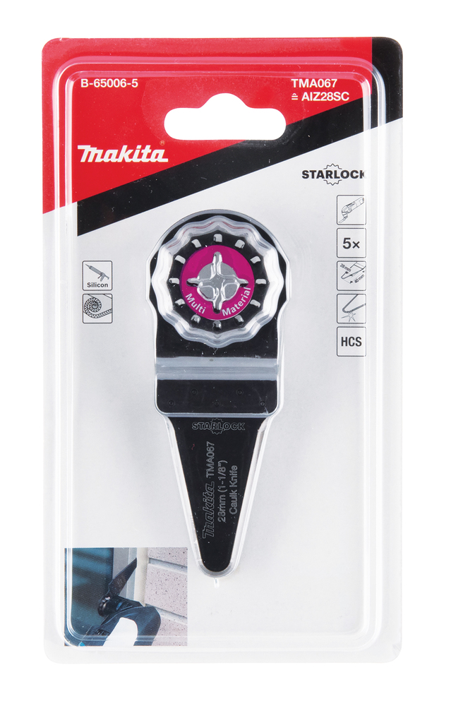 5x Universalfugenschneider TMA067 mit einem 28 mm breiten und 40 mm tiefen Schneidblatt. Die Tauchsägeblätter sind zum Schneiden von weichen Dehnfugen, Dichtmasse oder Dämmstoffen geeignet. Mit Starlock-Aufnahme für eine maximale Kraftübertragung und einen schnellen Blattwechsel.