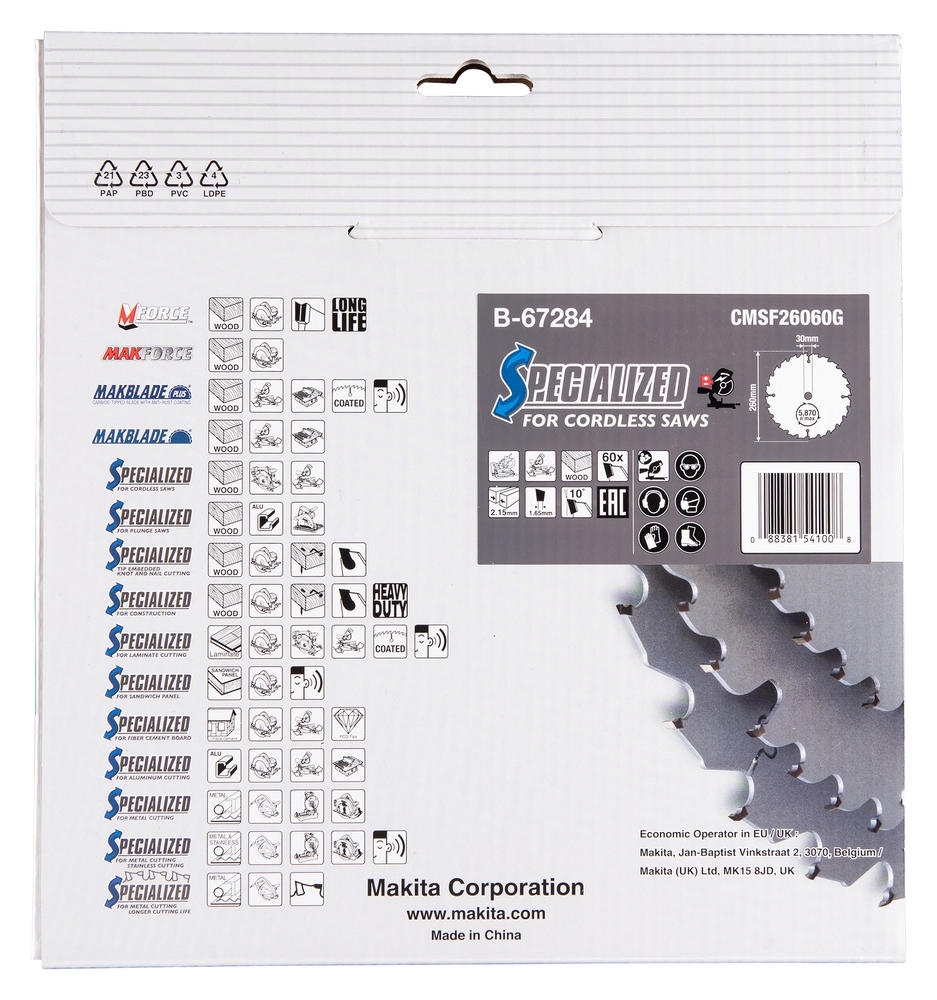 Produktinformationen "B-67284 Sägeblatt 260x2,15x30, 60Z EFFICUT"