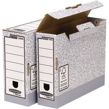 BANKERS BOX Archivschachtel Bankers Box® System 8,5 x 26,5 x 32,7 cm (B x H x T) DIN A4 mit Archivdruck Karton 100 % recycelt grau/weiß