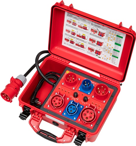 - Prüfung von mobilen Personenschutzschaltern PRCD Typ S, S+, K, 2-/3-polig sowie RCD Typ AC, A, F, B, B+ in mobilen Stromverteilern